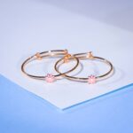 Delicate 18 kt gold bracelet weighing ~6.24 g, featuring petite pink enamel floral charms on a smooth hoop design crafted for the “Kids Wear” collection. BIS‑hallmarked for certified purity, this lightweight bracelet blends safety with playful elegance. The gentle floral accents add everyday charm—perfect for little ones.