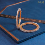 Exude opulence with Grand Aura, a bold creation from the Heavy Wear Collection. Designed in 18kt gold and encrusted with 6.24 carats of radiant diamonds, these heavy-set bangles in diamond capture the essence of grandeur. Ideal for celebratory occasions, they are a luxurious choice in diamond bangles for women with elevated taste
