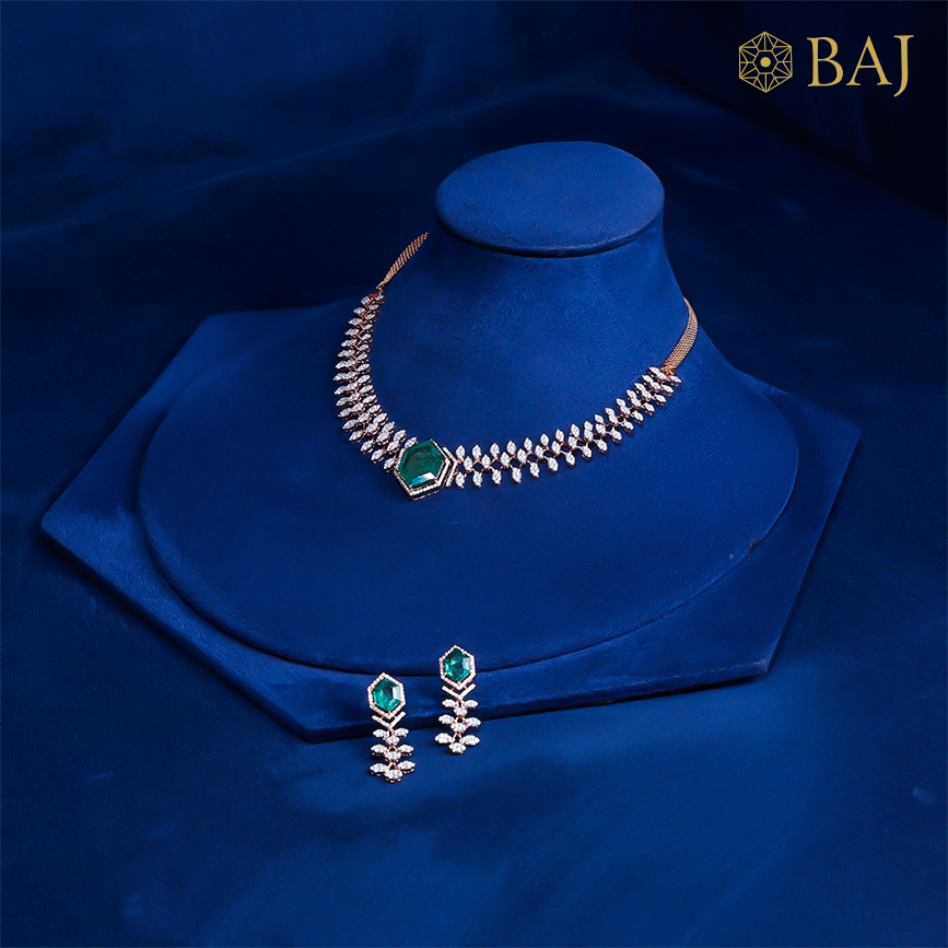 Turn heads with this striking real diamond necklace set, adorned with 5.32 carats of precision-cut diamonds and a captivating emerald green centerpiece. Crafted in 18kt gold, this set is the perfect blend of tradition and elegance—ideal for women who love timeless real diamond necklace sets with a modern touch.