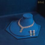 Gracefully adorned with 4.4 carats of natural diamonds, this light wear diamond necklace set for bride exudes charm with its floral green accents. Crafted in 18kt gold, the delicate arrangement offers the perfect blend of elegance and radiance—an ideal bridal jewellery pick for wedding functions and receptions.