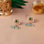 Floral Pearl and Green Gem Drop Earrings