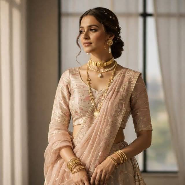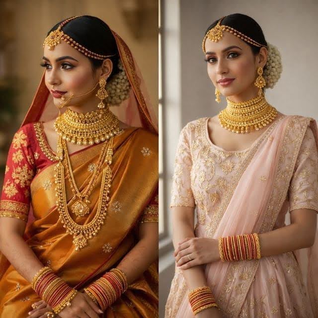 Gold bangles, kada sets, and layered necklaces blend well with many aesthetics. This helps brides invest in fewer but better pieces that last longer and remain functional beyond the wedding day.